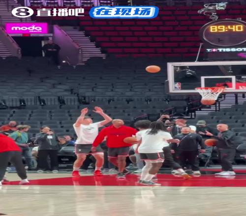 加油!杨瀚森赛前热身时练习近筐终结和中投